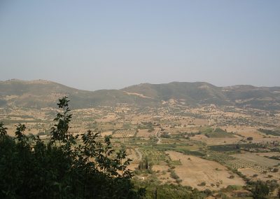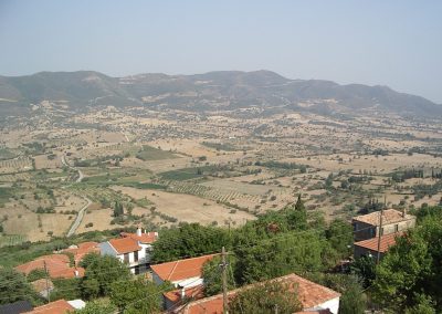 Santomeri is a village in the municipal unit of Olenia, Achaea, Greece. It is located on the northern end of Mount Skollis, 5 km north of Portes, 18 km south of Kato Achaia and 32 km southwest of Patras. In 2001 Santomeri had a population of 306 for the village and 477 for the community, which includes the villages Ampelakia and Polylofo.