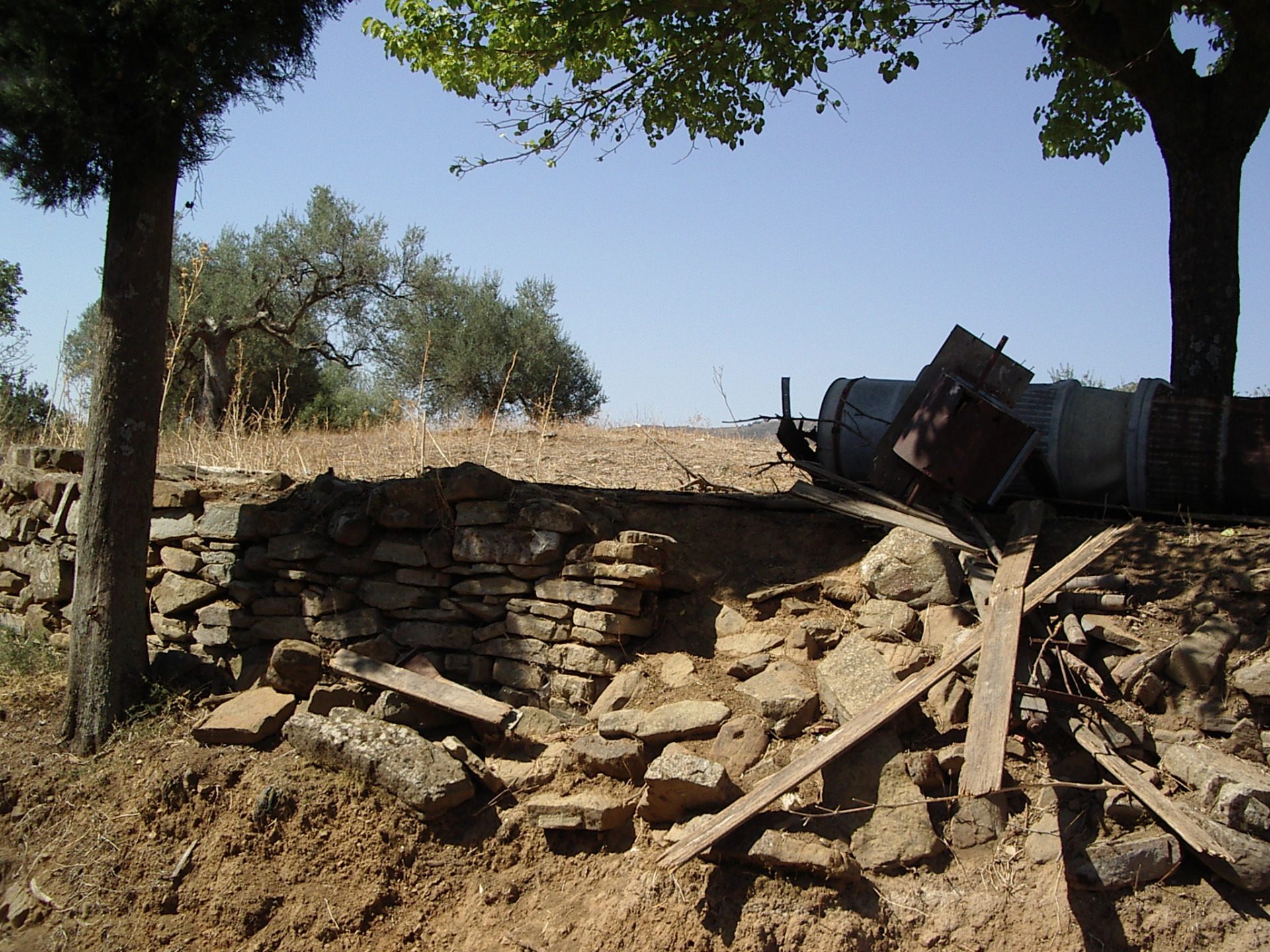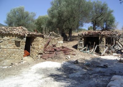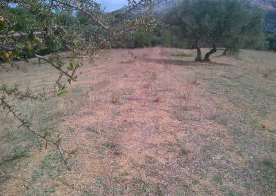 - Harvesting of olives. Because Santomeri region is a mountainous region, we use harvestors with gliders to reach the highest placed olive trees. This is hard work.